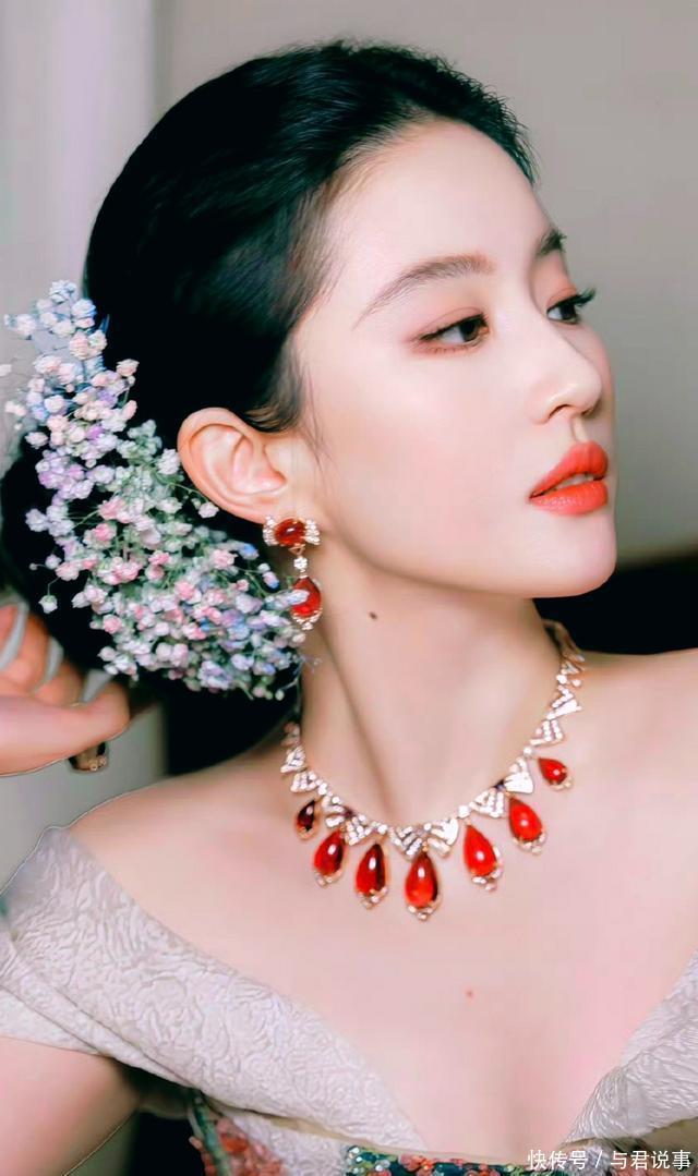 刘亦菲VOGUE红毯压轴像仙女下凡 昨晚上刘亦菲VOGUE红毯压轴像仙女下凡啊! 她配戴宝格丽红宝石项链和复古盘发点缀着满天星,如同花仙子下凡啦让人梦回《金粉世家》时期的白秀珠啊!